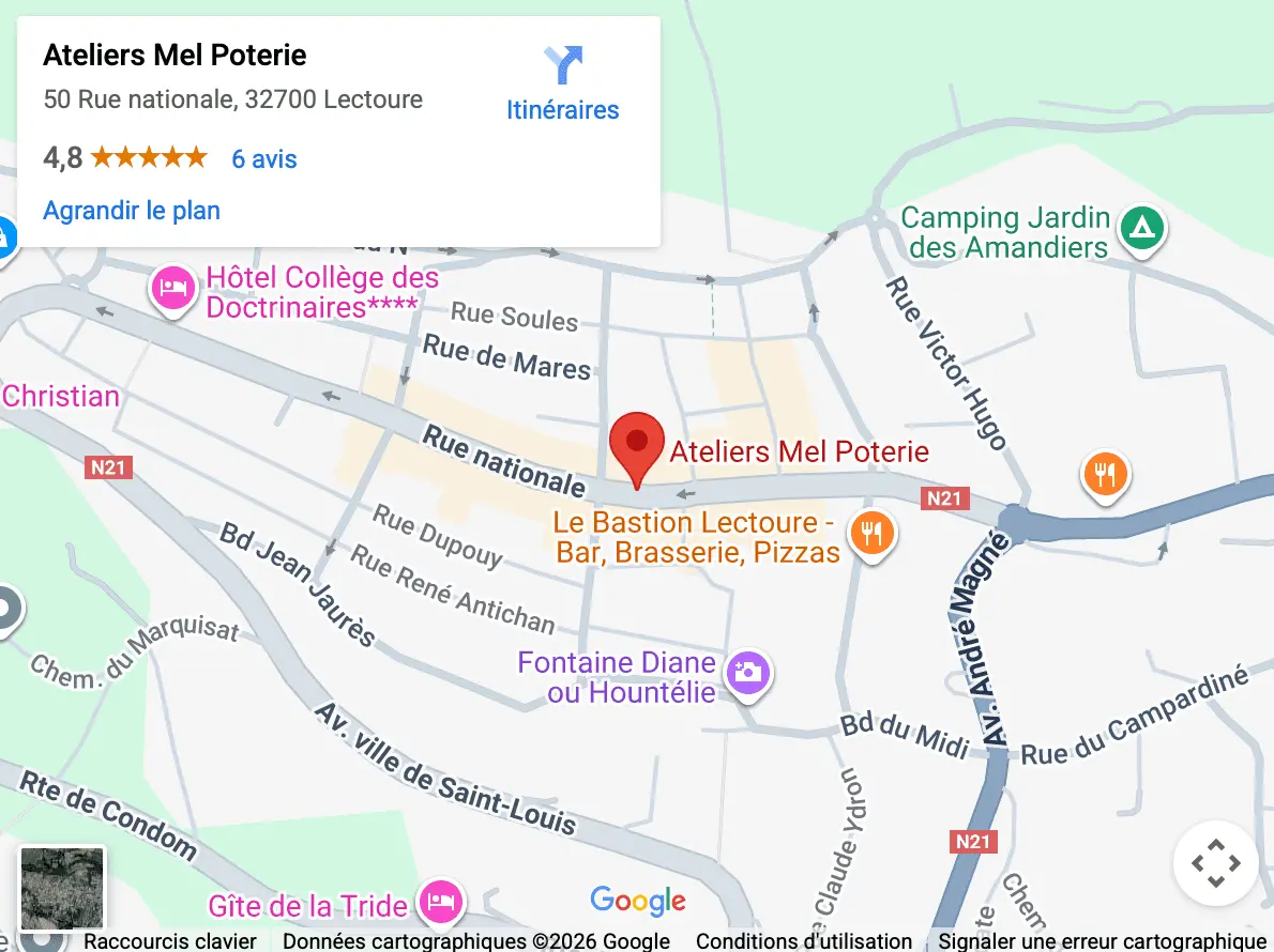 Le stationnement est facile à Lectoure. Vous trouverez des places en Zone Bleue (gratuites avec disque) directement devant la boutique, au 50 rue Nationale. De grands parkings gratuits sont également disponibles à moins de 5 minutes à pied (Allées Montmorency).